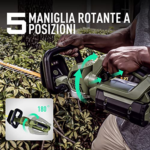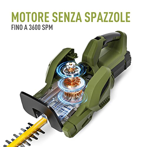 【TAGLIABORDI SENZA SPAZZOLE A ELEVATA EFFICIENZA】L'innovativo motore brushless di GREEN MACHINE garantisce un'autonomia superiore del 30% e una durata del motore superiore del 50%. Il nostro elettrico tagliasiepi può erogare fino a 3600 SPM per consentirvi di portare facilmente a termine il lavoro di potatura del vostro giardino.