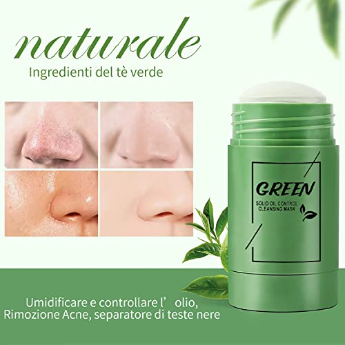 Green Mask Stick, Maschera al Tè Verde, Maschera all'Argilla per Pulizia Profonda dei Pori e dell'Acne, Idratazione della Pelle, Regolazione Acqua Olio in Equilibrio, Elimina Efficacemente Acne....