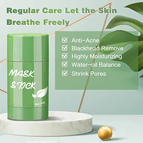 Green Mask Stick Naturale, Green Tea Cleansing Mask Facciale Anti-Acne, Green Tea Mask Stick per il Controllo Dell'Olio, Pulizia Profonda dei Pori,Esfoliante Rassodante, Punti Neri