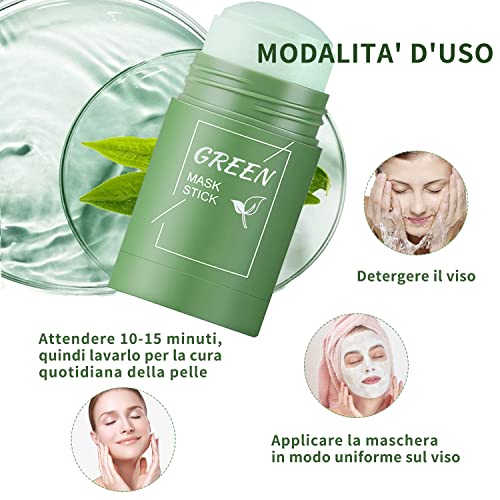 Green Mask Stick,Green Tea Mask Stick Punti Neri,Maschera in Stick Verde, Maschera Detergente, per la Pulizia Dell'acne, Rimozione Profonda dei Punti neri, Pegolazione Pell'equilibrio del Grasso
