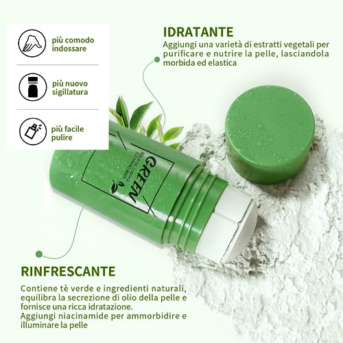 Green Mask Stick,Green Tea Mask Stick Punti Neri,Maschera Detergente, per la Pulizia Dell'acne,Regolazione Acqua Olio in Equilibrio,Idratazione della Pelle