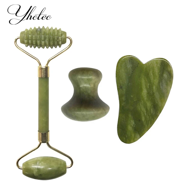 3 in 1 Green Natural Jade Roller Face Lift Tools Set Slimming Facial Massage Roller Face Massager Stone Skin Care Jade Roller