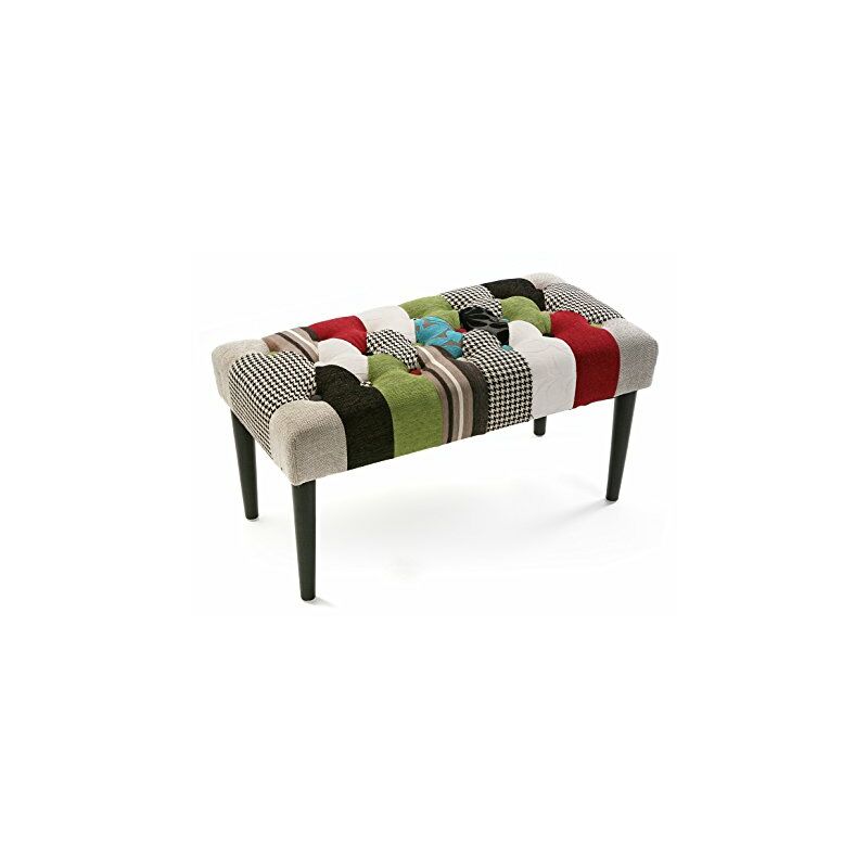 Versa Green Patchwork Sgabello a piè di Letto Poggiapiedi per la Camera da Letto, Cassapanca per la Hall o l'ingresso, Colorato, Misure (A x L x l) 43 x 40 x 80 cm, Cotone e Legno, Colore Verde 80x40x43 cmColor: Bl/Gr