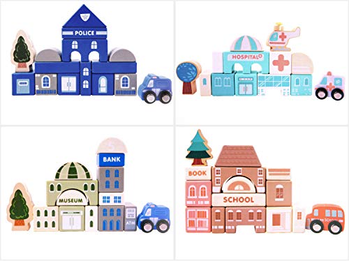 ✔️ [Il set è composto da 115 elementi in legno]. Comprende: elicotteri, alberi, segnali stradali, edifici come: stazione di polizia, negozio, ospedale, museo, banca, libreria, scuola, vigili del fuoco, bar, hotel. Veicoli: ambulanza, polizia, vigili del fuoco, autobus, auto di sicurezza e molti altri articoli. Costruzioni per bambini!
