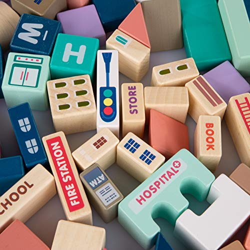Green series Kinderplay Costruzioni Legno per Bambini | Set Da 115 pezzi in Legno - Mattoncini per Costruzioni | Blocchi Giocattolo Educativi per Bambini, KP8464