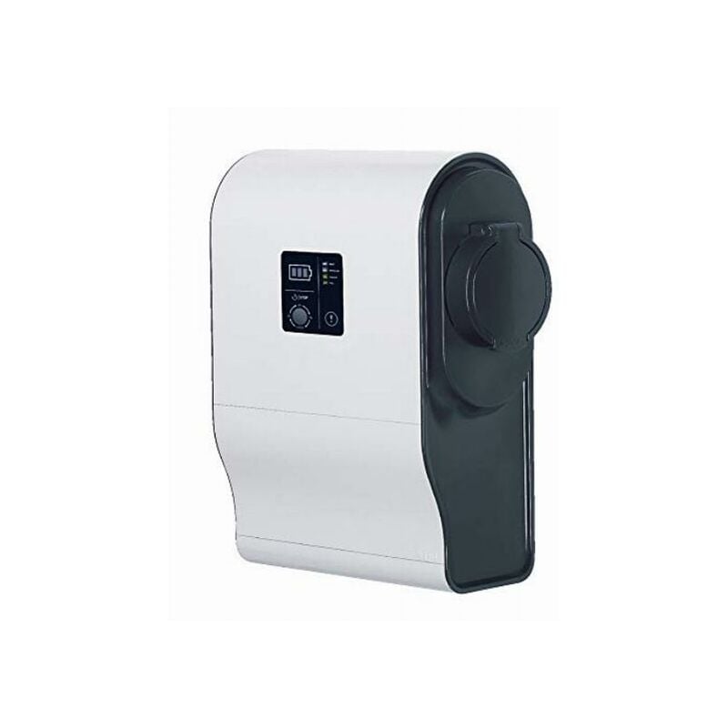 Stazione di ricarica in plastica monofase 3,7/4,6 kW - 16/20 A - ricarica modo 3. Grado di protezione IP44 - IK08. Adatta alla ricarica di 1 veicolo