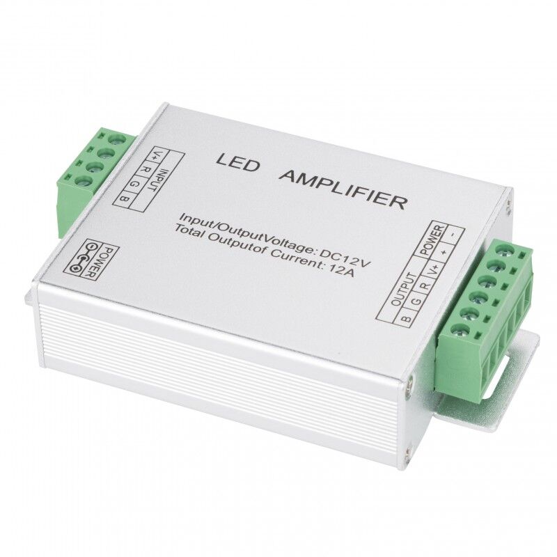L'amplificatore RGB 12VDC consente di condizionare il segnale lungo la lunghezza della striscia LED, consentendo all'intensità che attraversa la striscia di rimanere stabile e senza alcuna caduta per tutta la sua lunghezza. Ha un ingresso e un'uscita per adattare le due sezioni di strip LED e 2 uscite per l'alimentazione desiderata. Tra le caratteristiche tecniche dell'amplificatore spiccano le seguenti: strong> Funzione di protezione della polarità dell'ingresso. Controlla fino a 15 metri di strisce LED o altro tipo di dispositivo LED dimmerabile. Multilivello con protezione polarità ingresso alimentazione. 2 tasti per ingresso/uscita segnale e 2 per uscita potenza. Resistente alle interferenze radio. ul> Codice Prodotto: KDAMPRGB12V Materiali: ABS Altre Informazioni: Istruzioni dettagliate nella scheda "Documenti". Valutazione IP: IP25 Voltaggio: 12VDC Certificazioni: CE,RoHS, ISO9001 Frequenza (Hz): 50/ 60 Intervallo di Temperatura (°C): -20 +60 Peso (Gr): 70