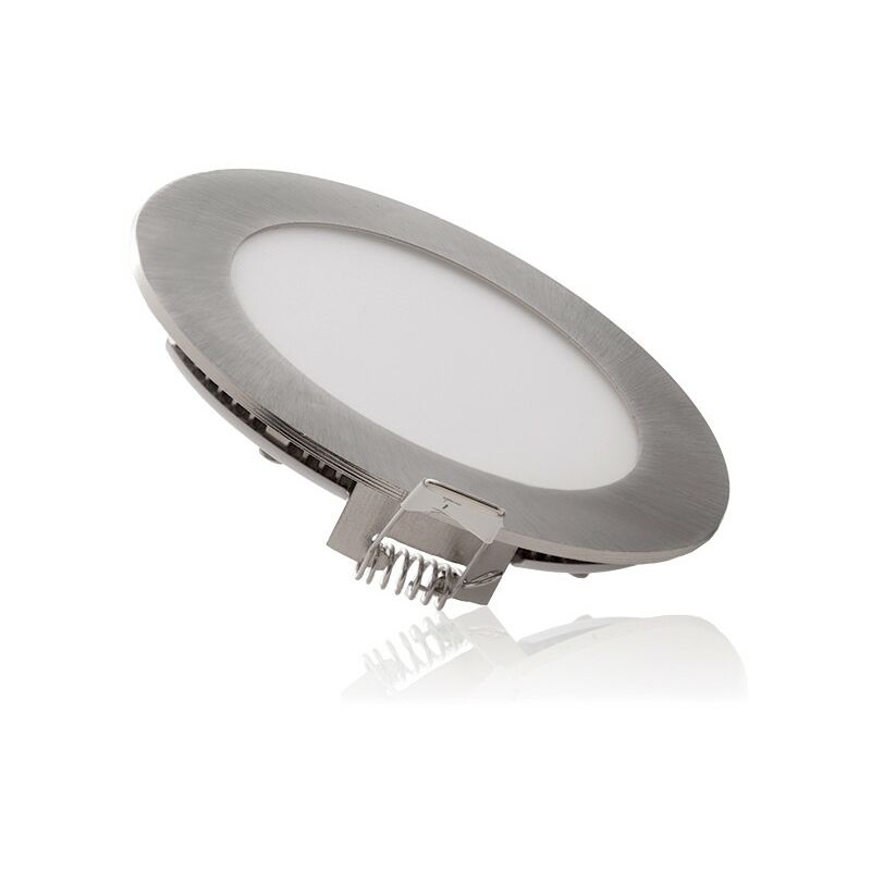 La scheda LED circolare di 150 mm di diametro, con dimensioni ultrasottili (18 mm), funziona a 24V. Ha un'alta efficienza (80 Lm/W) consumando 9W attraverso LED di tipo SMD2835 e riuscendo a fornire un flusso luminoso di 720Lm uniformemente distribuito da un diffusore in plastica opalizzata da cui si ottiene un indice di resa cromatica pari a 80. Fornisce un'illuminazione equivalente a quella di una lampadina a incandescenza da 60W, il suo consumo rappresenta un valore di 9kWh/1000h, riducendo la quantità di energia fatturata e le emissioni di gas inquinanti nell'atmosfera. Rifinito in colore nichel, costruito in alluminio. Il pannello ha un grado di protezione IP25 (valido per polvere e umidità in ambienti interni), oltre a essere sufficientemente robusto per le esigenze meccaniche richieste. Questa piastra è disponibile in bianco freddo (6000°K). La temperatura di colore indicata può subire fluttuazioni corrispondenti a una tolleranza del 7%. I downlight LED sono ideali per