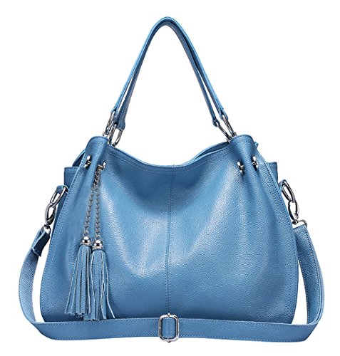 Greeniris Donna morbide Borse del cuoio genuino Borse borse nappe spalla Totes per le donne Azzurro