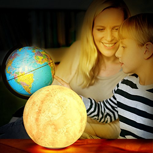 Greenskon Lampada 3D Touch a Forma di Luna Luminosa Ricarica USB Luce LED Notturna per Arredare la Vostra Casa o la Stanza dei Bambini. Con Supporto in legno. (15cm)