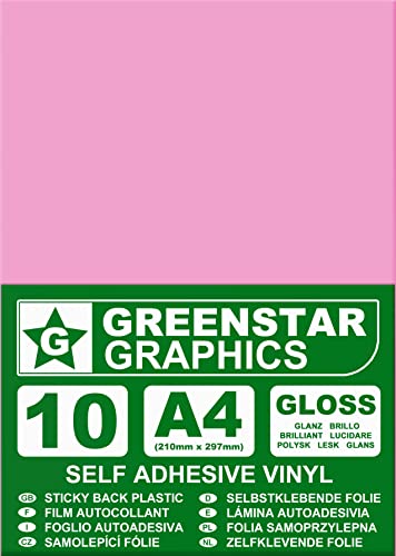 GREENSTAR GRAPHICS ® LUCIDO VINILE AUTOADESIVO (10 FOGLI) Per Argiantano, Arti e Mestieri, Fai Da Te, Gli Hobby e Silhouette Cameo/Curio/Portrait, Cricut & Scan N Cut (ROSA CHIARO LUCIDO A4)