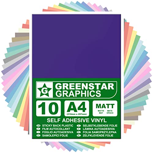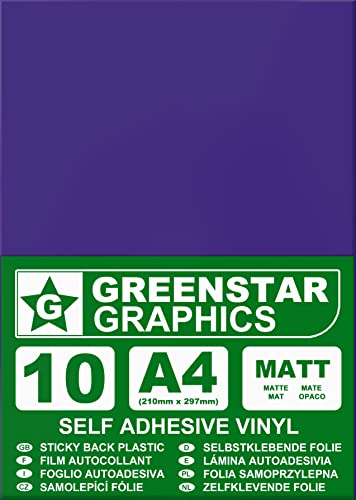 GREENSTAR GRAPHICS ® OPACO VINILE AUTOADESIVO (10 FOGLI) per Artigianato, Arti E Mestieri, Fai Da Te. Gli Hobby e Silhouette Cameo/Curio/Portrait, Cricut & Scan N Cut (PORPORA OPACO A4)