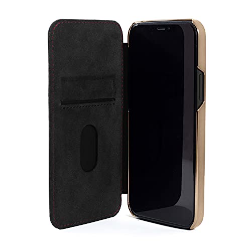 Greenwich BLAKE - Custodia in pelle per iPhone 13 Pro, compatibile con ricarica wireless MagSafe, colore: Rosso/Oro