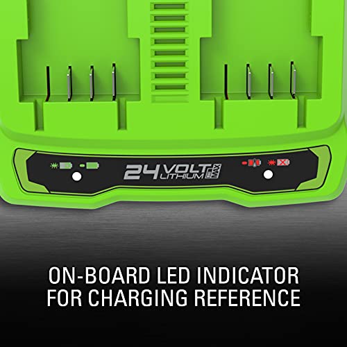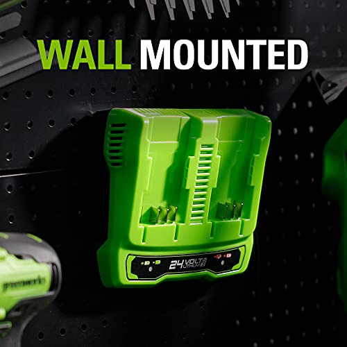 Greenworks Tools Caricabatterie Universale G24X2UC2 a Doppio Slot, Uscita Li-Ion 24 V 48W, Adatta a Tutte le Batterie della Serie Greenworks 24 V
