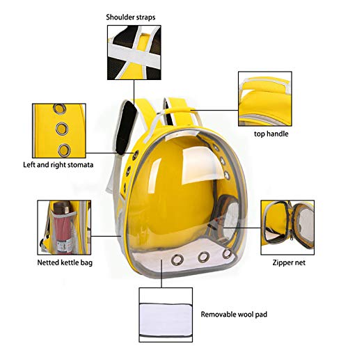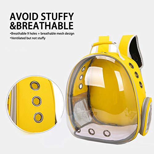 Confortevole per animali domestici: design con 9 fori di ventilazione traspiranti: 9 fori di ventilazione e 2 finestre laterali per garantire una completa circolazione dell'aria e ventilazione all'aperto, cuccioli e gatti possono rimanere in questo zaino senza sentirsi soffocati.