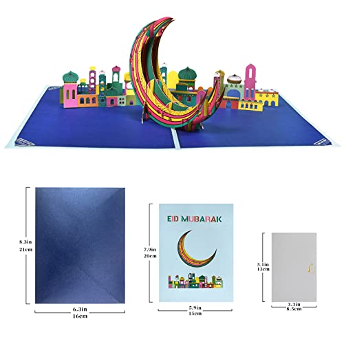 dimensioni del biglietto pop-up Eid Mubarak: 20 x 15 cm;