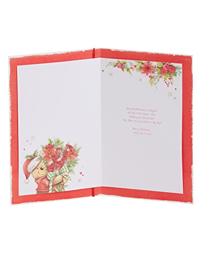 Stampato su tavola di alta qualità, questo biglietto di Natale Disney Winnie the Pooh per la persona che ami presenta un versetto in rima, scintillanti pellicole metalliche e un fiocco in rafia.