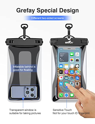[Pratico Multi-Scena] Borsa impermeabile galleggiante Grefay per telefono cellulare, disponibile ovunque. Puoi goderti tutte le attività all'aperto come snorkeling, kayak, canottaggio, nuoto, beach volley, surf e sci e può essere utilizzato anche in bagno, cucina e altre case. Suggerimenti: alcuni modelli si adattano al non-shell, alcuni modelli si adattano alla custodia sottile e alla custodia spessa.