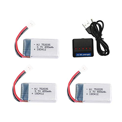 Grehod Batteria lipo 3.7V 400mAh 752035 + Caricabatterie 3.7v per H31 X4 H107 H6C KY101 E33C E33 U816A V252 RC Drone Pezzi di Ricambio Black