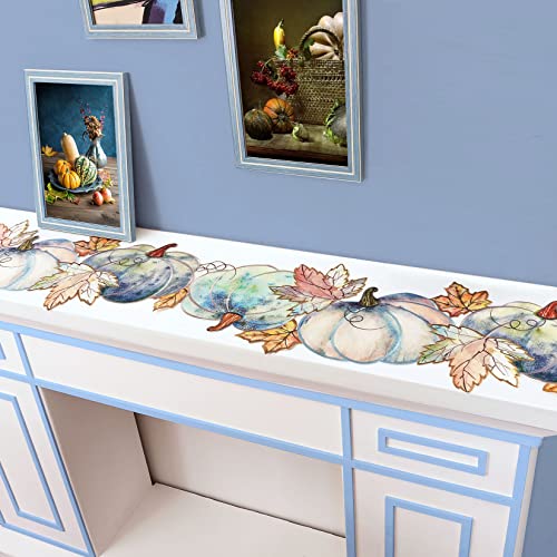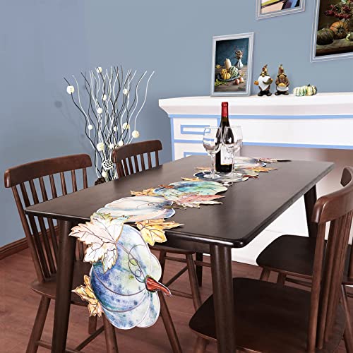 Grelucgo Runner da tavolo con zucche autunnali, blu autunnale, sciarpa da tavolo, decorazione per tavolo da pranzo (35,6 x 177,8 cm)