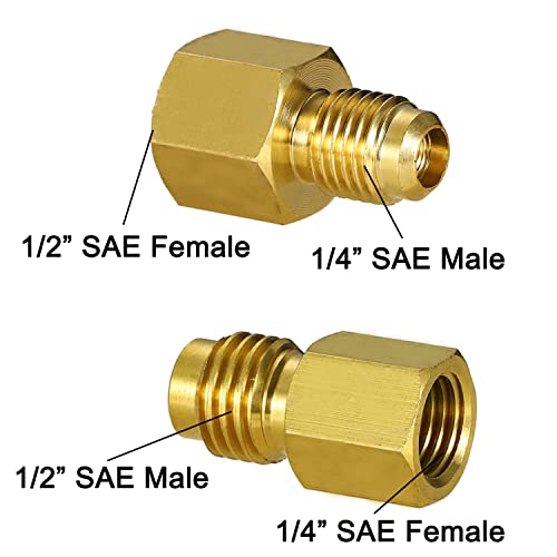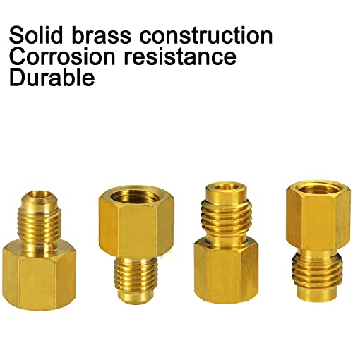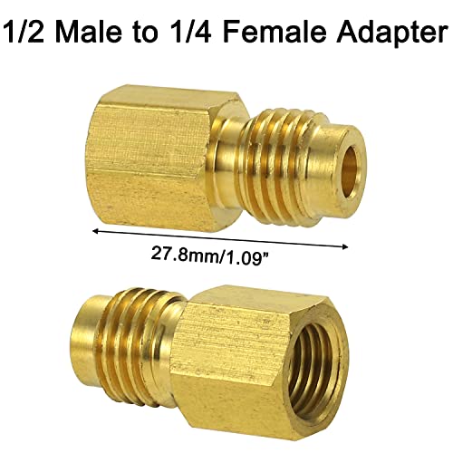 Greluma 4 Pz 6015 R134A Adattatore serbatoio refrigerante in ottone ad adattatore R12 1/2" femmina Acme-1/4" maschio svasato, 6014 Adattatore pompa a vuoto 1/4" svasato femmina-1/2" Acme maschio