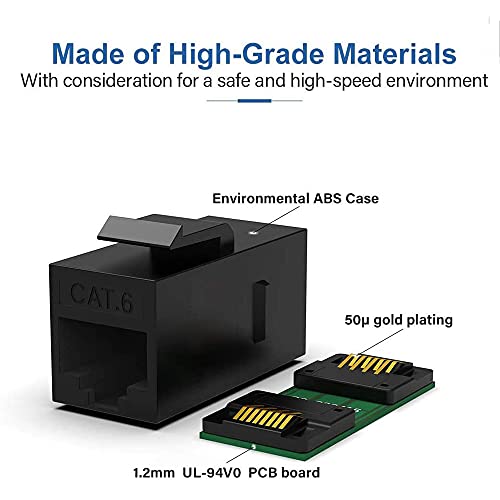 STANDARD CAT6 AD ALTE PRESTAZIONI: la tecnologia e la funzione dell'accoppiatore ethernet ha prestazioni più elevate rispetto agli standard TIA / EIA e ISO CAT6, si adatta a pannelli di permutazione, scatole a montaggio superficiale o piastre a parete (piastre frontali) .Utilizzare con doppino intrecciato non schermato (UTP) Cat6 cavo.
