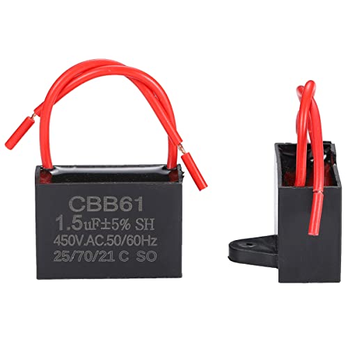 Greluma 2 pezzi 1.5uF 450V AC CBB61 condensatore ventilatore da soffitto 50/60Hz motore, non polarità, 2 fili
