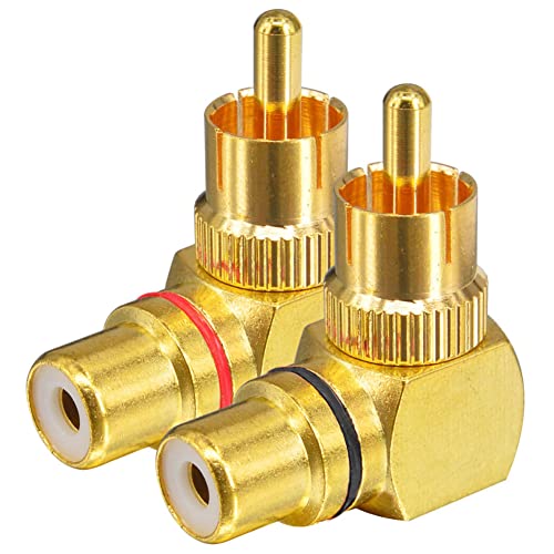 Greluma 2 pezzi convertitore adattatore RCA maschio a femmina ad angolo retto, 90 gradi, 1 rosso e 1 nero