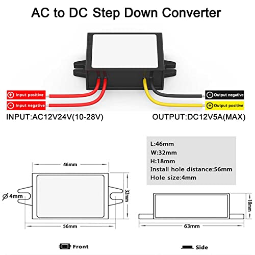 Greluma 1 Pezzo Convertitore buck AC 12V 24V a DC 12V 5A 60W, ingresso 10-28V Modulo di alimentazione step-down AC-DC, riduttore regolatore di tensione impermeabile