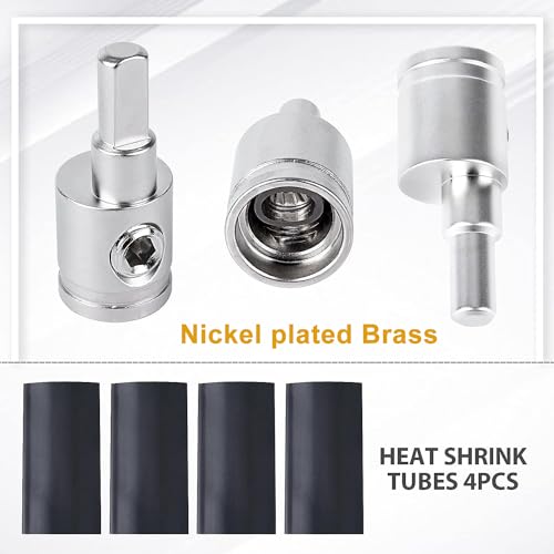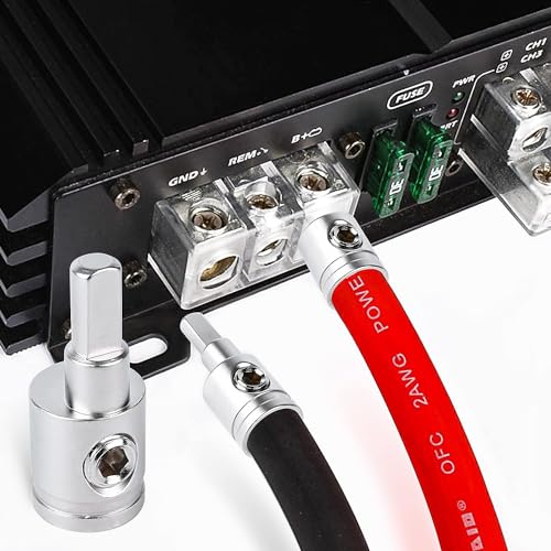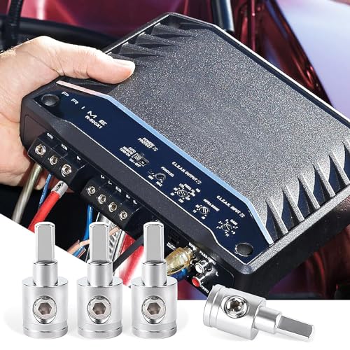 BUONA SCELTA:riduttore di ingresso amplificatore da 0 Gauge a 4 Gauge,morsetto con vite esagonale.Connessione molto efficace e sicura.Rende la tua connessione più pulita