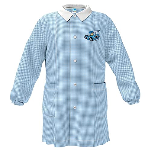 Grembiule Asilo Bambino Siggi 47gr3757 Auto da Corsa Bottoni, Bianco Azzurro, 6
