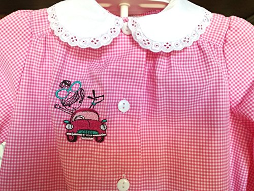 Grembiule ASILO Siggy rosa scuola infanzia bimba 4 anni altezza 104cm spalla 27cm BOTTONI patch ragazza cane automobille