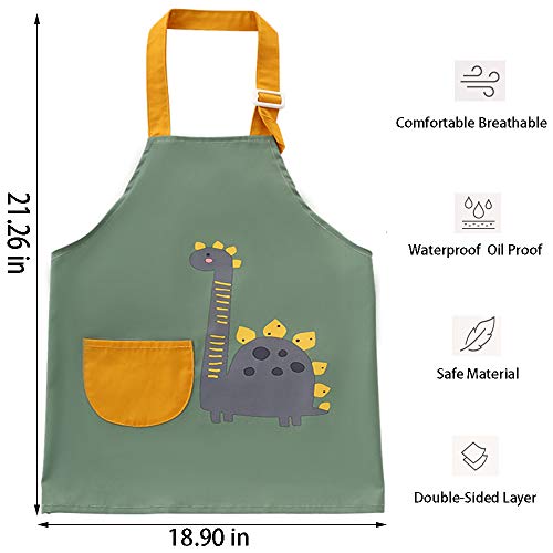 Grembiule per Bambini Dinosauri Grembiule Cucina Bambini Grembiule Pittura Bambini con Tasche e 2 Maniche Impermeabile Regolabile Grembiule Bambini per Ragazzi Ragazze Pittura Cucina (6 AI 9 Anni)