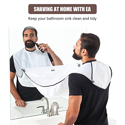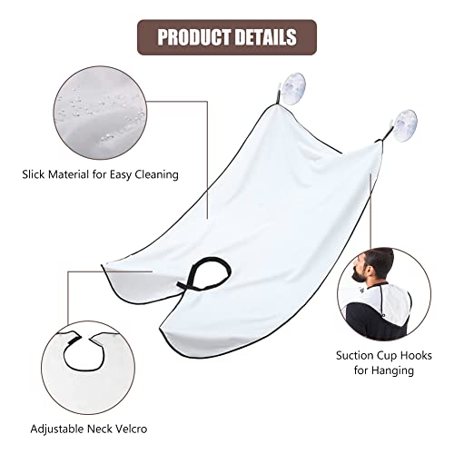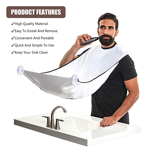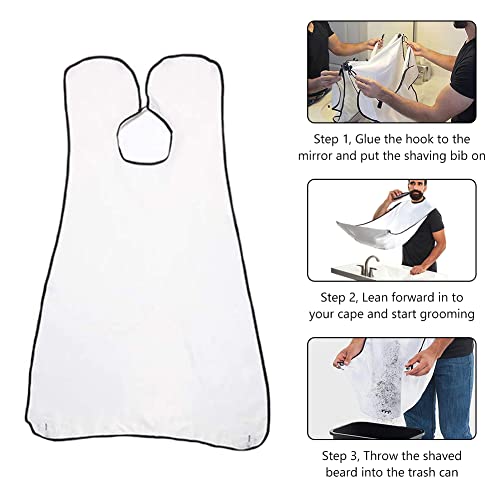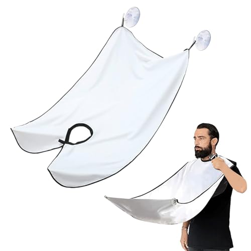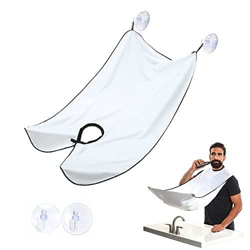 Grembiule Barba, Telo Barba con Ventose, Beard Apron Cattura Barba e Capelli, Bavaglino da Barba, Grembiule con 2 Ventose per Specchio Lasciate Che il Vostro Bagno Pulire - Bianco