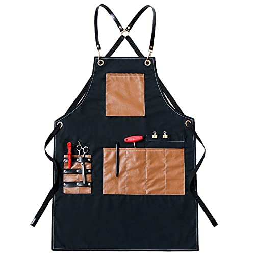 Grembiule Da Barbiere - Cinghie in Pelle, Tasche Porta Attrezzi, Incrocio Sul Retro - Regolabile Per Uomo, Donna - Barista, Barista, Parrucchiere, Grembiule Da Salone,Nero,Large