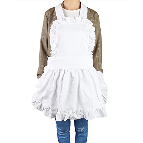 Grembiule da Cameriera Grembiule da Donna Cotone Bianco Grembiule Cucina Con Orlo a Volant Grembiule da Cucina in Tinta Unita
