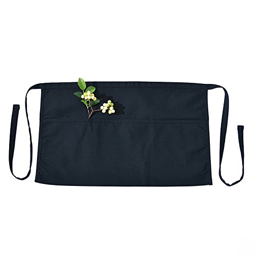 Grembiule da chef, impermeabile anti-olio, grembiule da cucina nero corto con 3 tasche per giardinaggio, cucina, ristorante, bar, adatto per quasi tutti gli adulti, donne e uomini.
