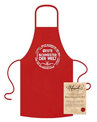 Grembiule Grembiule da cucina grembiule Beste Schwester come regalo di compleanno o di Natale regalo diversi motivi nei colori: nero e rosso, 100% cotone, rot-06, Medium