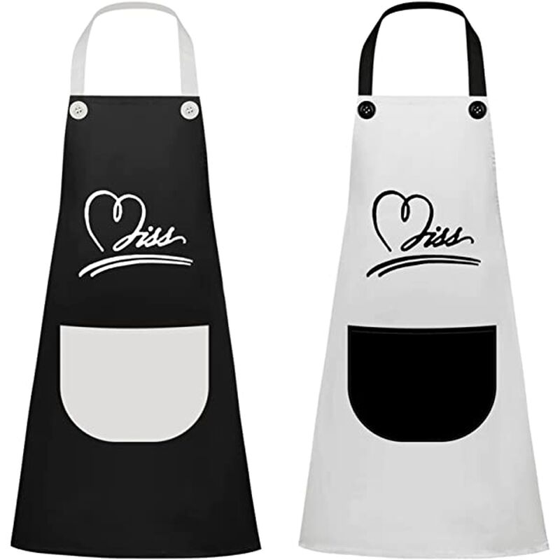 Confezione da 2 grembiuli impermeabili, uno nero e uno bianco. Abbigliamento da lavoro antivegetativo senza maniche Tuta impermeabile alla moda e carina per uomo e donna, utilizzabile anche in altri luoghi, come dipingere insieme per aumentare i sentimenti. 【Copertura superiore】: il grembiule ha un rivestimento impermeabile per un'ottima copertura e previene grasso da cucina, fuoriuscite e macchie di cibo. 【Regalo perfetto】: il simpatico set di grembiuli è un bel regalo per moglie, fidanzata, nonna, sorella, figlia, saranno sorpresi di ricevere questo regalo per compleanno, festa della mamma, San Valentino, Natale.