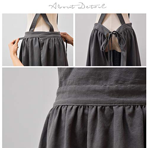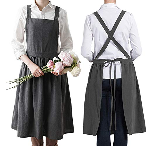 Grembiule Da Donna Grembiule Di Lino Abito Da Cucina Con Grembiuli Incrociati Sul Retro,Grigio