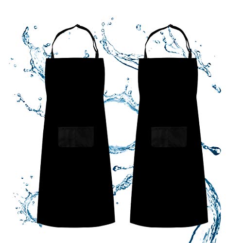 Grembiule, Grembiule con Pettorina Regolabile Waterdrop Resistant con 2 Tasche Cottura Cucina Giardinaggio Grembiuli BBQ, 2 Pack Nero, per Donna Uomo Chef di Shovan