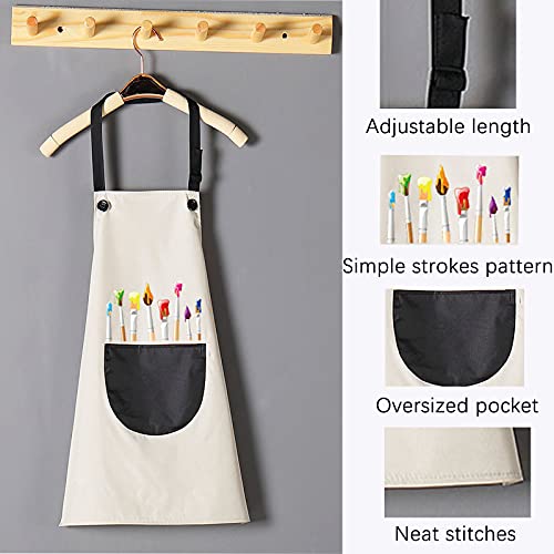 [Tasche extra grandi] Grembiule asilo 2 grandi tasche anteriori, puoi mettere utensili da cucina, spazzole, giocattoli, caramelle, ecc.grembiule asilo bimba ha un simpatico motivo a pennello, adatto sia a ragazzi che a ragazze.