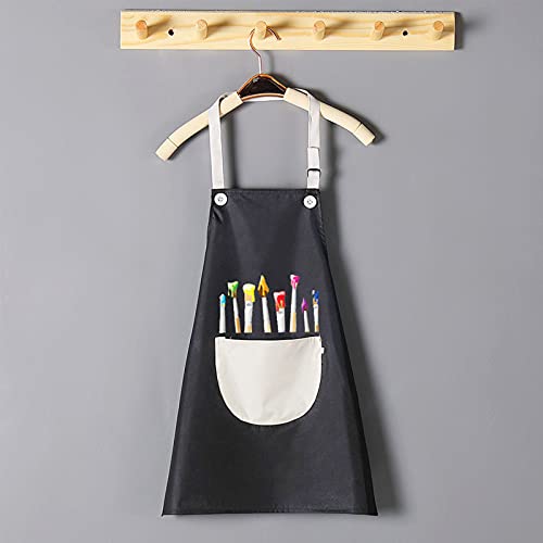 Grembiule Pittura Bambini Grembiule Cucina Bambini 2 Pezzi Grembiuli per Bambini Bambini Grembiule con Tasche Grembiuli da Cucina per Bambini Grembiuli Artistici per Bambini Nero Grigio(3-8 Anni)