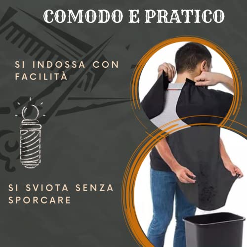ADDIO ASPIRAPOLVERE - Si sa che il momento della rasatura è una delle pratiche che genera più sporcizia in bagno. Con la nostra mantella per taglio capelli e barba non dovrai più passare ore a pulire lavandini e pavimenti, grazie al sistema di raccolta barba e capelli. una volta terminata la rasatura o il taglio, puoi svuotare il grembiule da barbiere direttamente nel cestino.