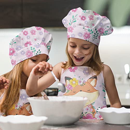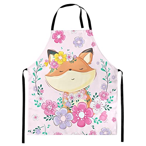 Grembiule Regolabile Per i Bambini Accessori da Cucina con Motif Volpe Tra i Fiori [099]