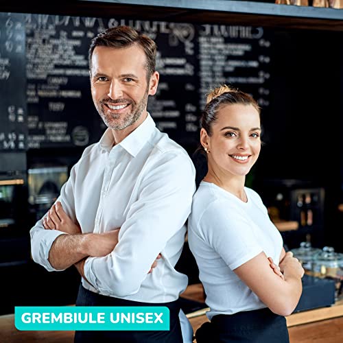 【 PARANNANZA UNISEX 】 Grembiule da bar con tasche per donna e uomo. Tessuto tecnico innovativo premiato dall'Unione Europea, che conferisce al poliestere proprietà di impermeabilità e autodisinfezione (antivirus, antimicotico e antibatterico). Questo, a sua volta, evita che il tessuto assorba cattivi odori. 4 unità sono incluse.