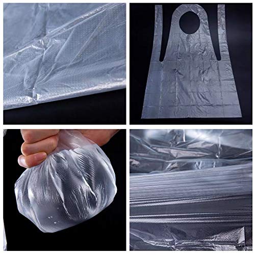 Leggero e pieghevole: può essere piegato per essere riposto in una piccola borsa a casa e non occupa troppo spazio, facile da pulire e asciugare rapidamente. La confezione include 100 grembiuli in plastica usa e getta.