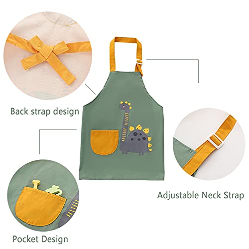 [Design Unico]: Questo grembiule è dotato di una borsa decorativa e funzionale.Il bambino può riporre pennelli e altri oggetti per dipingere facilmente.Allo stesso tempo, il simpatico motivo a dinosauro aggiunge un punto luminoso al grembiule.La tintura e la colorazione attive è solido, non facile da sbiadire ed è ecologico e salutare.
