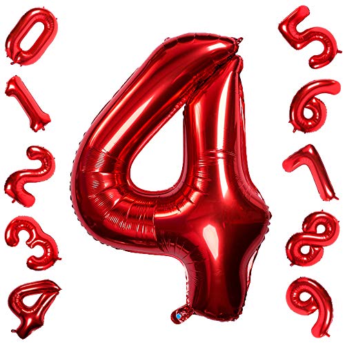 Gremode 4 palloncini rossi, 101,6 cm, decorazioni per feste di compleanno, palloncini digitali in Mylar a elio (numero 4)