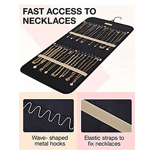 Progettato ganci-collana organizer viene fornito con 2 file di robusti ganci in metallo più facile e veloce per accedere a tutto. Differiscono dalle scatole di gioielli disordinate, il design superiore delle cinghie elastiche può mantenere le collane separate e districate. il design ha davvero guadagnato il 'amante gioielli